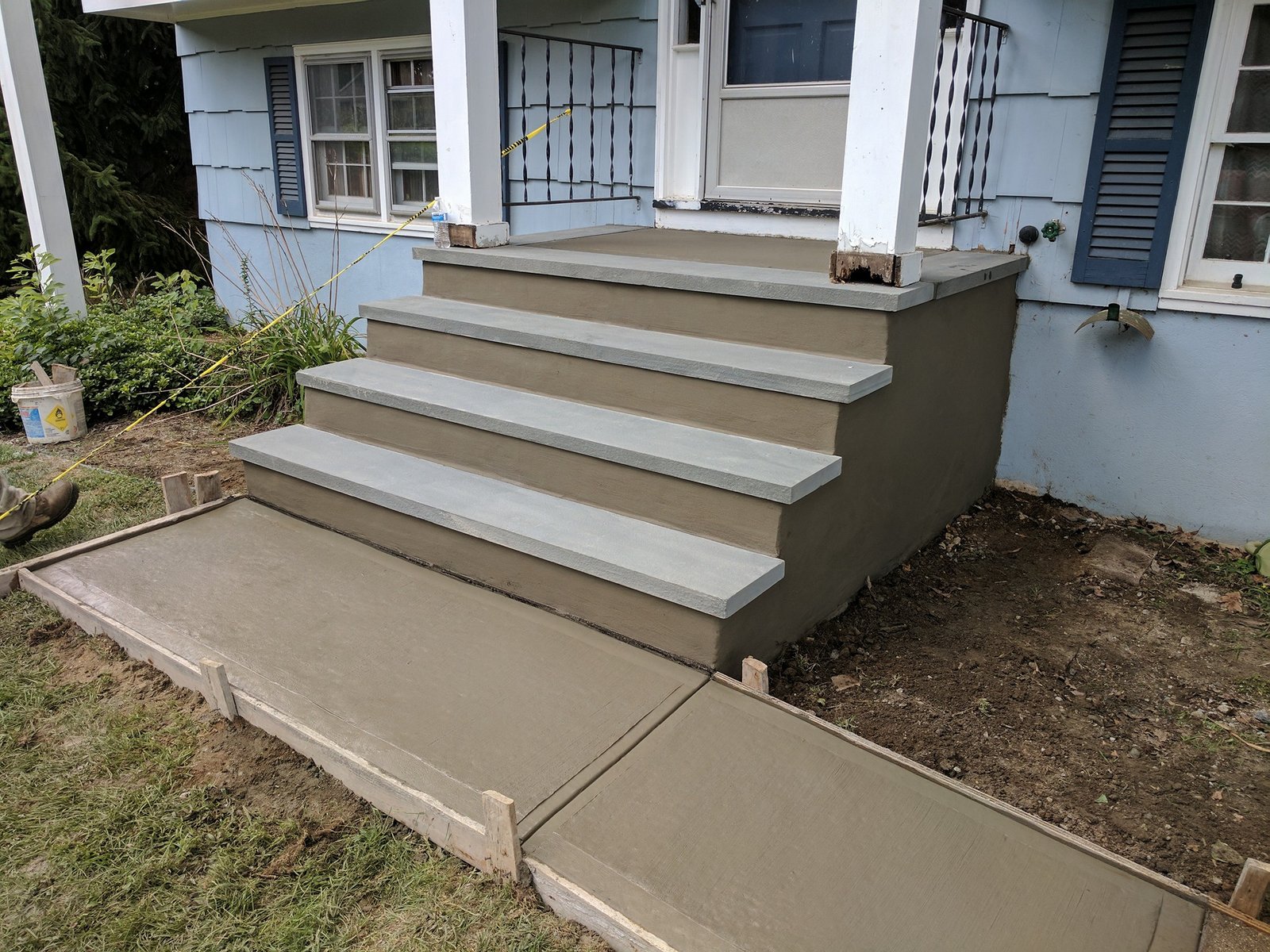 New Step Installation: Custom design and construction of steps using high-quality concrete, natural stone, or brick to match your home’s architectural style.